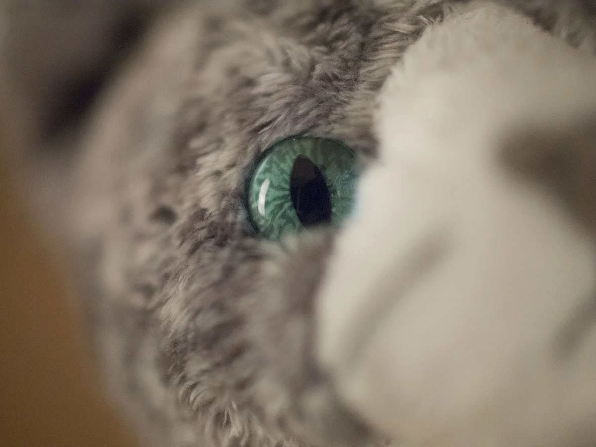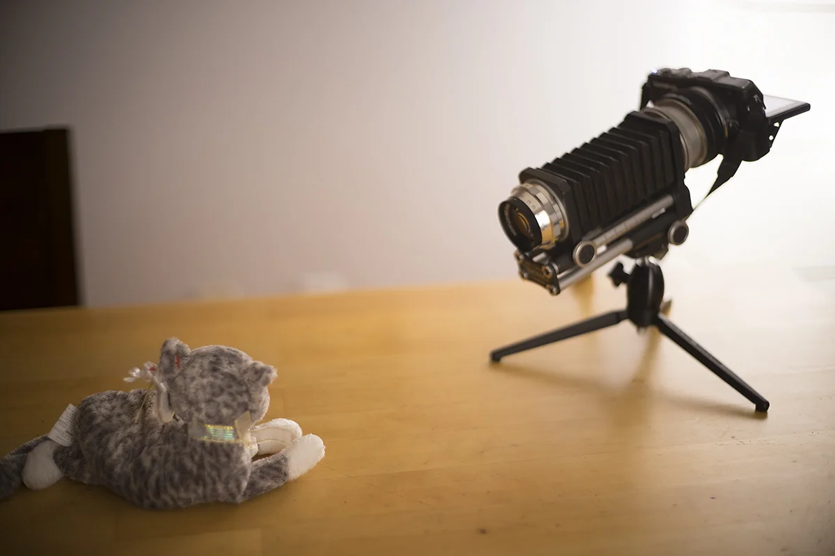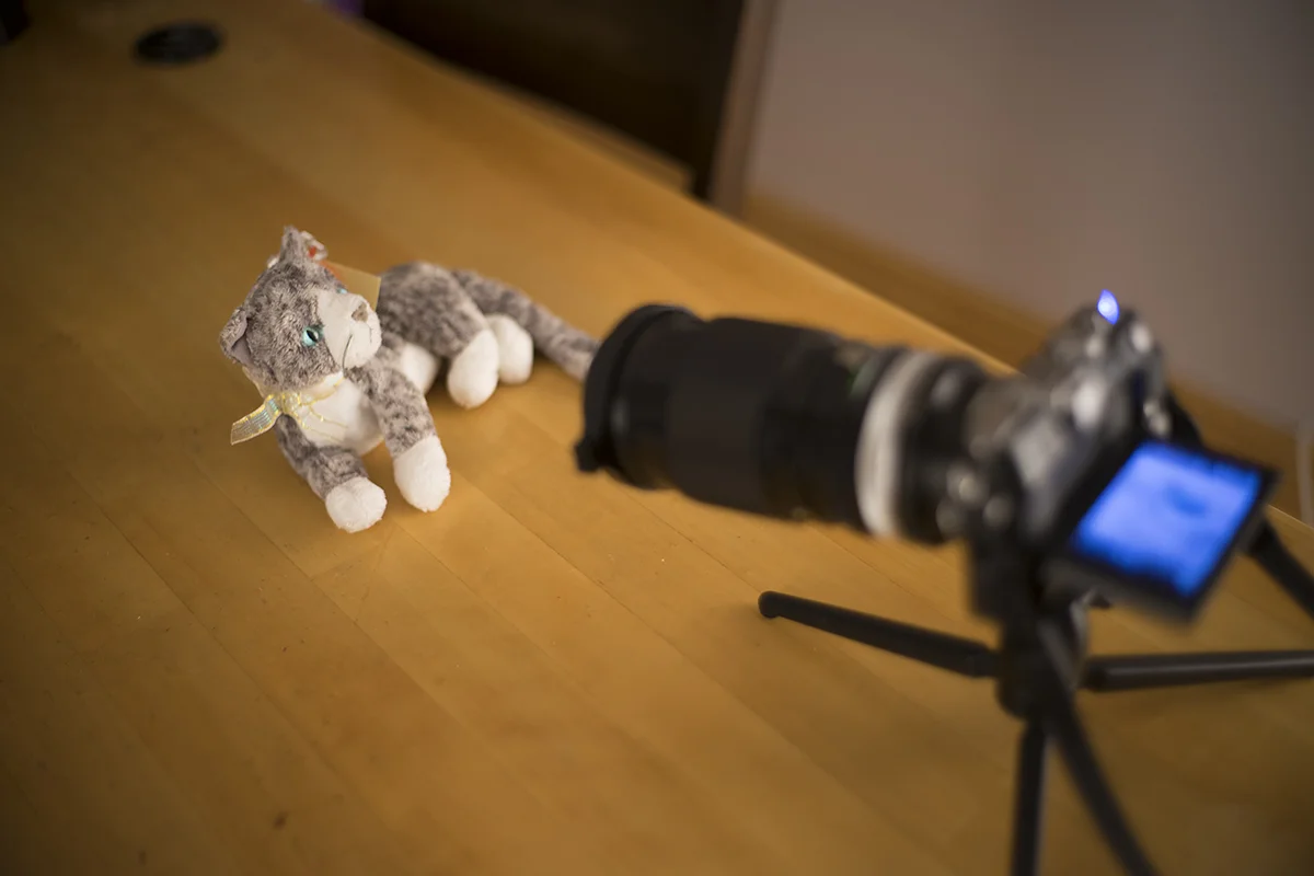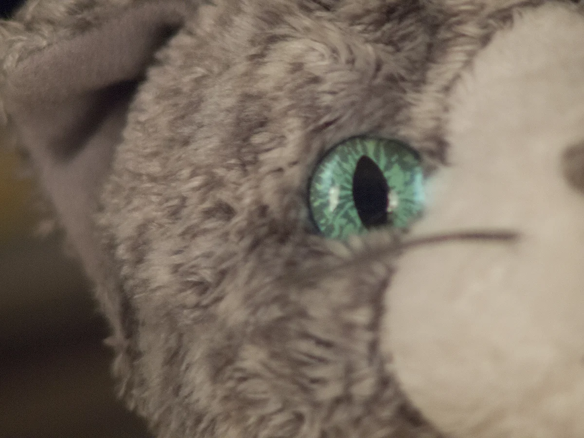 Let’s see the effect it has on three Canon FD lenses: a 135mm f/2.5, a 50mm f/1.4, and a 28mm f/2.8. I’ll use this stuffed cat to demonstrate.